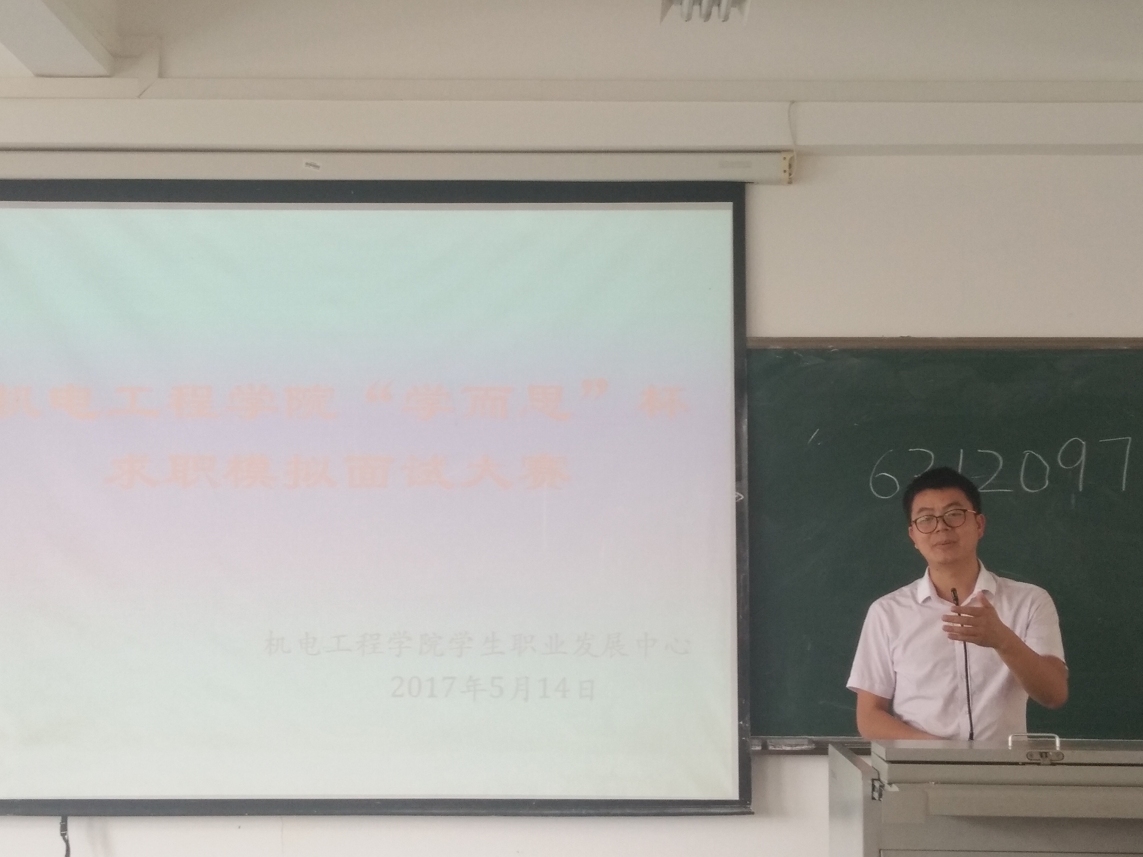 2017年05月14日星期日英国上市公司3654教317成功举办“学而思”杯求职模拟面试大赛初赛。担任初赛评委的有就业指导中心张海韵,土木建筑工程学院就业辅导员詹达夫,学院辅导员崔建兵,李青,傅悦五位老师,机电职业发展中心的成员和参赛选手参加比赛。