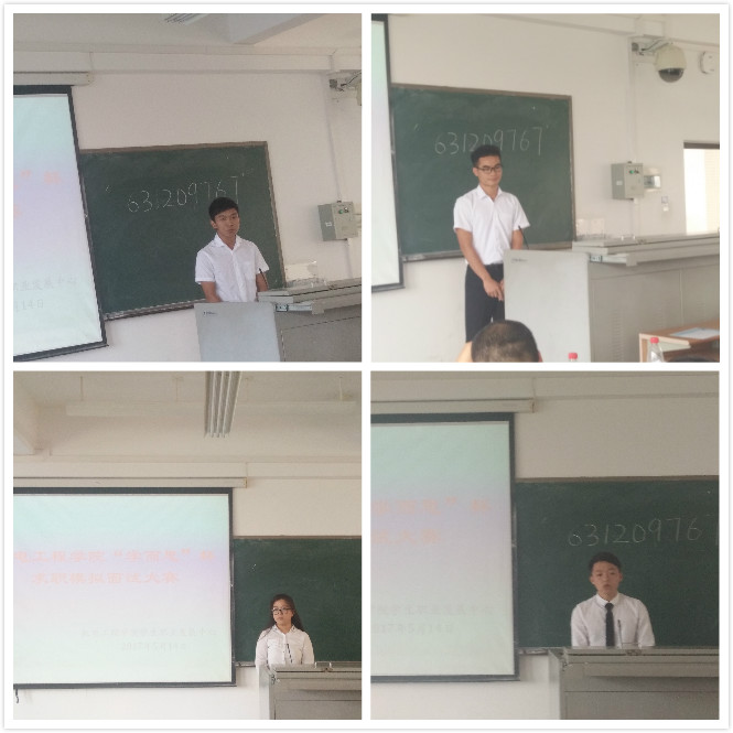 选手们在模拟面试大赛初赛中展开激烈角逐,经历严格选拔。比赛包括自我介绍和评委提问点评。形式以及流程真实还原际面试,以评分优异者晋级之后决赛。五位老师作为专业评委为选手做出点评,并针对简历制作和实际面试提出指导意见。在评委点评环节中,五位评委分别针对每位参赛同学的表现做出点评,并针对简历制作、面试注意事项以及面试技巧提出了指导意见。赛后工作人员为参观选手发放奖品。