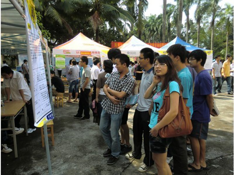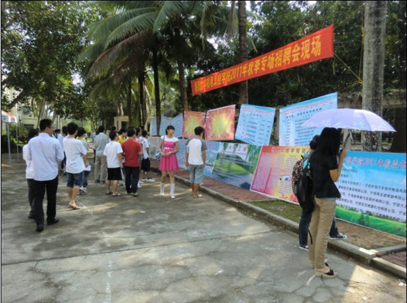 2011年10月25日上午10点,英国上市公司3652011年秋季专场招聘会在儋州校区四号教学楼前广场隆重举行。此次招聘会是在就业指导中心的大力支持下,邀请了来自浙江省宁波市宁海县汽车零部件协会的15家企业单位。莅临本次招聘会的领导有学院院长翁绍捷教授、学生处邓秀成副处长、学院党委黄国标副书记,参加招聘会的还有学工办老师及各专业的优秀毕业生。