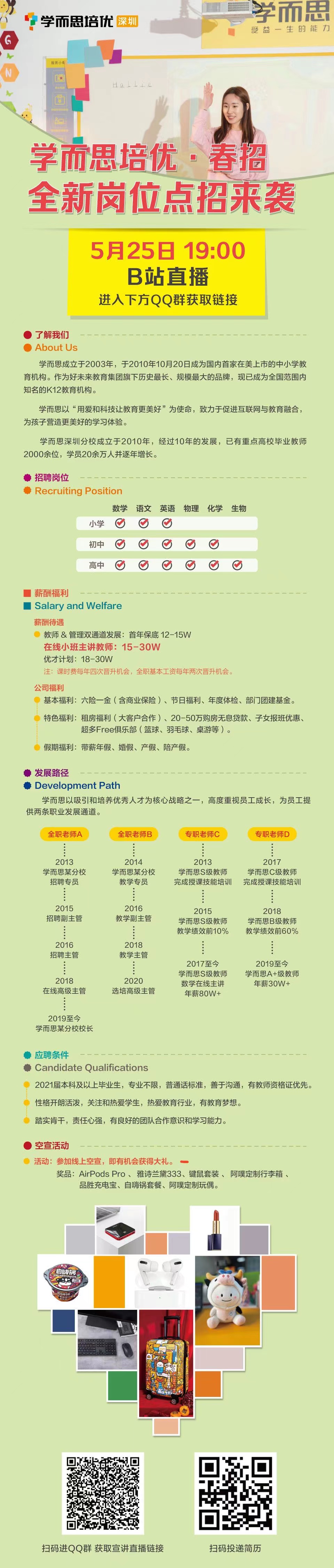 工作内容:线上授课/线下授课+运营管理,为你提供更多发展机会。
