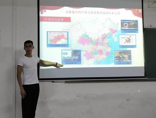 动员大会在全体机电学子的殷殷期盼中拉开序幕,主持人张小其老师宣布动员大会正式开始。动员会主讲人董赫老师向同学们强调了责任的重要性,他说:“身为一名中国人,我们都应该有保家卫国的责任;作为一名大学生,我们更应该积极响应国家号召,参军入伍保家卫国”。而后,董赫老师分别从国家和个人层面向同学们展示为什么祖国需要大学生入伍参军,当代有志青年又为什么要携笔从戎进军营:对于国家来说,民族复兴的中国力量需要坚强的国防来支撑,体系重塑的一流军队需要优质兵员做脊梁;对于个人而言,正当芳华的有志青年需要熔炉淬炼方成大业,军队的历练能够对一个人的意志品德、能力素质、纪律观念、奉献精神等进行全方位的塑造。接下来,董赫老师用幽默诙谐的讲授方式,向同学们详细介绍了国家以及海南大学对于大学生参军的优抚优待和政策支持,现场氛围达到了高潮。