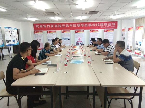 7月4日下午,海南大学应用科技学院冯社洪副书记一行5人到我院交流党建工作,学院党委书记黄国标、党委副书记李宏、全体辅导员参加党建交流会。