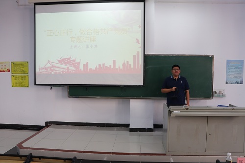 张小其老师围绕“正心正行,做合格党员”这一主题,向同学们提出了一个问题:“入党是为了什么?”引发了同学们的深思。随后张小其老师为同学们展示了视频《这就是中国-开天辟地新中国》,结合视频分析了新中国成立以来取得巨大成就的原因——就是因为在中国共产党的领导下,人民能够团结一心战胜困难。他再次回到了最初的问题,向发展对象提出两个要求:端正自己入党的动机,端正行为来加入中国共产党;发展对象们要严格要求自己,以更好的姿态加入中国共产党。