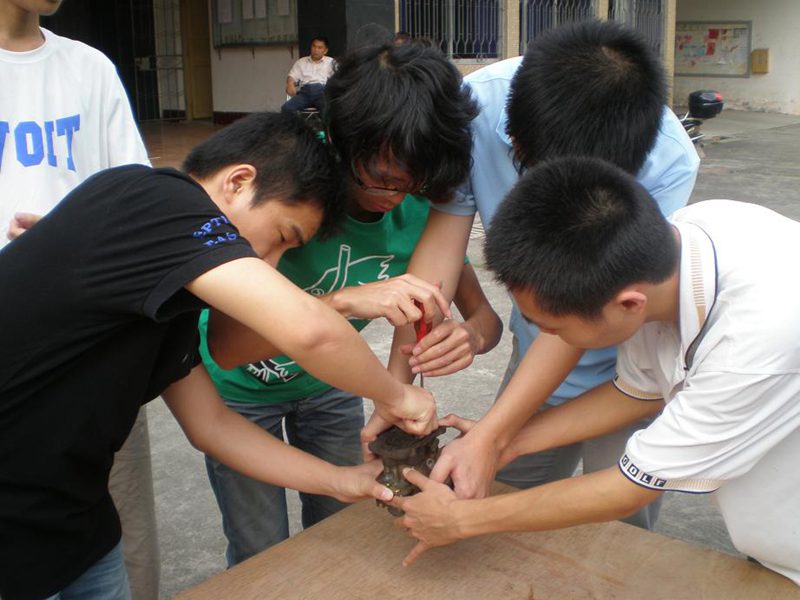 大赛开始前,四号楼前聚集了80名参赛者。此次汽车技能大赛包括汽车零件拆装、汽车知识问答、汽车倒桩三项内容,裁判由林妙山、张建珍老师担任。零件拆装比赛中,张老师还不时向各队参赛队员提出关于汽车零件的问题,让同学们锻炼动手能力同时,还能更深刻地了解各个零件作用和功能。知识问答比赛中,参赛队员反应敏捷,灵活应用课堂知识,很好的回答了比赛问题。汽车倒桩是此次汽车技能大赛压轴大戏,各队都派出最强的“车技高手”,一展驾车雄风。整场比赛在紧张而又欢快的气氛中结束了。