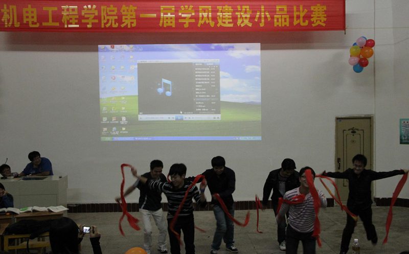此次比赛分两组进行。首先上场的是09机械2班,他们表演的从一个侧面反映了大学学习中存在的一些问题,以幽默的对白给大家以警醒,你一言我一句带动了现场气氛,为比赛开了好头。之后上场一系列小品更是引起现场笑声连连。机械系党支部准备的小品,演绎了现在极少学生整天沉迷游戏,考试过程中作弊的场景。告诫同学们考试不能作弊,平时要努力学习才能考出好成绩。尤其是由09电气1班带来的小品集幽默的语言和夸张的舞蹈于一体,将比赛现场的气氛推向高潮,全场掌声雷动,延绵不绝。告诫同学们我们不能忘来大学的目的,时刻不要忘了学习,不要辜负父母、老师及社会对我们的期望。09电气2班的,讲述的是一名大学生丢弃了理想,随波逐流,在舍友的鼓励下,重拾理想,为自己未来蓄势待发。