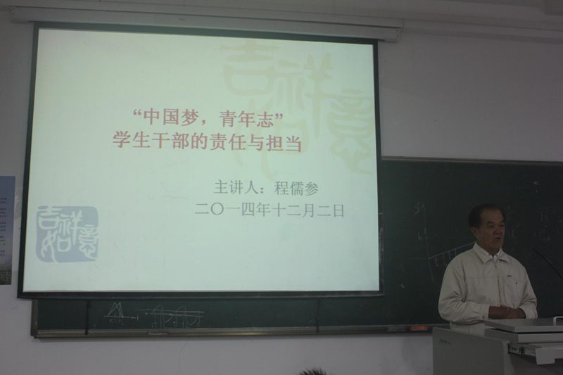 为增强学生干部责任与奉献意识,树立良好楷模形象以带动学院学风与文化建设,12月2日下午,英国上市公司365特邀我校退休老干部程儒参同志在5教102针对2013级学生干部举行以“中国梦,青年志”为主题的讲座,对学生干部的责任与担当给予最真挚的寄语与建议。出席讲座的有退休老干部王荣老师,2013级一百多名班干部。讲座由学工办教师崔建兵主持。