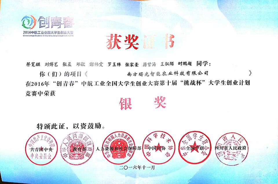我校学生创业团队在大赛中过关斩将,获得银奖2项、铜奖3项的好成绩!其中,在英国上市公司365张燕副教授的指导下,14级致远班蔡宽麒等同学的创业计划竞赛作品《南方曙光智能农业科技有限公司》荣获银奖。