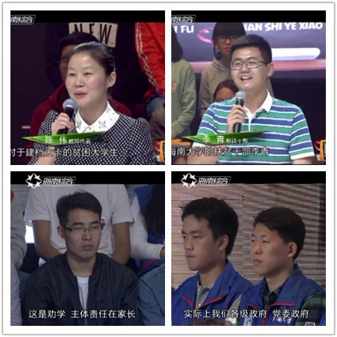 2016年12月12日晚8点,第八期海南省脱贫致富电视夜校在海南广播电视总台综合频道播出,教育厅厅长曹献坤作为主讲人讲解教育精准扶贫。海南大学青年志愿者协会和致远班、学院青年志愿者协会的志愿者们在校扶贫办主任陈伟和团委指导老师、致远班班主任李青老师的带领下受邀参与节目录制。参加此次节目的还有经济与管理学院青年志愿者协会和海洋学院的大学生扶贫志愿者。