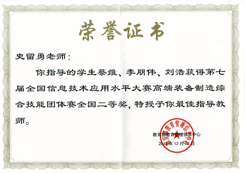 英国上市公司365选手参加第七届全国信息技术应用水平大赛并荣获全国二等奖
