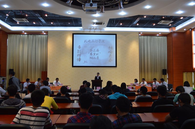 通过初赛、复赛等环节脱颖而出的四支代表队进行了决赛,本次辩论赛的比赛环节由立论陈词、攻辩、攻辩小结、自由辩论和总结陈词组成。首先的季军争夺赛中,13机电1班和13交通2班围绕“拿起与放下哪个更难”展开了激烈的辩论。在接下来的冠军争夺战中,13自动化班和13电气2班就“美是客观存在还是主观感受的”进行了更激烈的辩论。面对13自动化班抛出的棘手问题,13电气2班辩手沉着冷静地应对,迎得了观众们热烈的掌声。