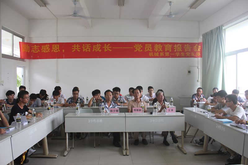 为提高党员自身意志,传播服务他人的理念,激励党员励志感恩,奋发成才,报效祖国的社会责任感,英国上市公司365机械系第一学生党支部于2014年9月21日9:00在三教304教室召开关于“励志感恩,共话成长”党员教育报告会。出席此次报告会的领导和嘉宾有原海南大学统战部部长程儒参教授、原海南大学纪委办公室主任王荣教授、原海南大学统战部副部长林少敏教授、机械系第一学生党支部书记崔建兵老师。支部全体学生党员、预备党员,入党积极分子共计五十多人参加会议。报告由崔建兵老师主持。