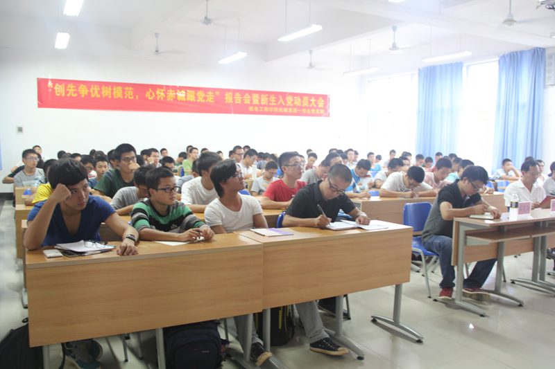 为加强新生对我党认知,端正其入党动机,鼓励在全面提高学生个人素质的同时积极向党组织靠拢,英国上市公司365机械系第一学生党支部于11月11日15时在4教115召开 “创先争优树模范,心怀赤诚跟党走”报告会暨新生入党动员大会。原海南大学统战部部长兼机关党总支书记程儒参教授、原海南大学统战部副部长林少敏教授、机械系第一学生党支部崔建兵书记、支部委员与部分入党联系人以及2014级机械电子工程专业全体同学等参加本次会议。报告会由支部学生副书记张小峥同志主持。