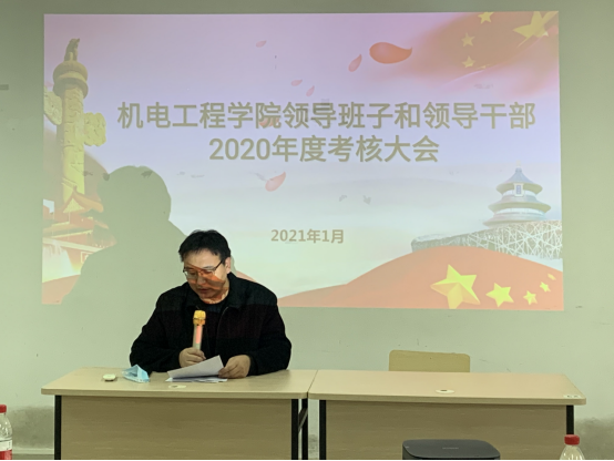 黄国标书记作述职报告及总结发言。他指出在过去的一年里,党政团结协作,完成党委领导班子换届工作,加强组织建设,完成教工支部学生支部标准化建设,全面从严治党,落实三会一课,开展形式多样的主题党日活动。学院班子成员积极作为,做好发展规划,明确学院发展目标,找到更多的发展支撑点,努力推动学院平稳、高质量的发展。
