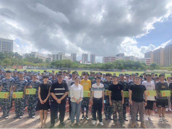 为及时了解2021级新生在校情况,帮助新生适应大学生活、新环境,9月14日上午,学院党委书记黄国标、副处级辅导员周霞以及学工办全体老师走进海南大学城西校区军训训练场,探访慰问新同学,并与新生亲切交谈、送上关怀。