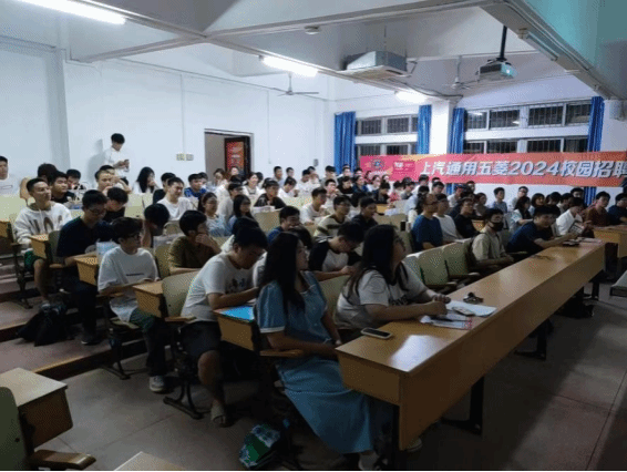 9月25日晚,上汽通用五菱汽车股份有限公司(以下简称“上汽通用五菱”)2024校园招聘宣讲会在二教2-110顺利举行。上汽通用五菱海南线校园招聘经理陈志根、招聘运营师张洋、新产品质量经理罗晓宁以及有就业意愿的同学参与本次活动。