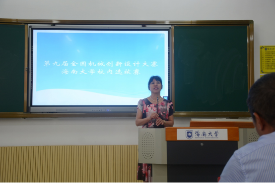同时,海南省竞赛组委会委员廖宇兰教授对本次比赛的评审细则进行了讲解,强调了在校内选拔赛结束后,学生应在作品基础上汇总、准备设计图纸、实物、视频ppt和产品说明书等重要材料,鼓励学生以后能更加积极参与像全国大学生机械创新设计大赛这样全面锻炼自己所学的赛事。